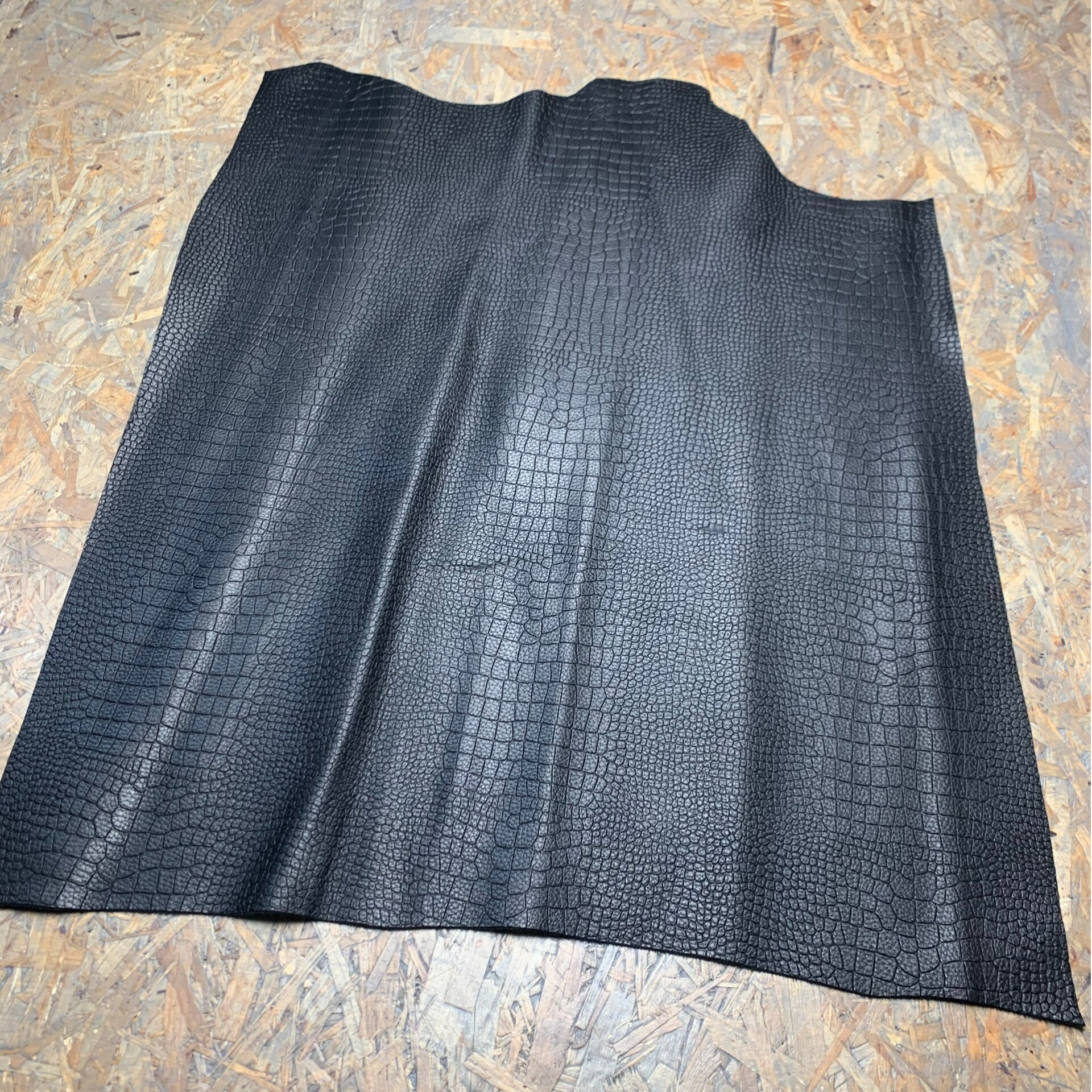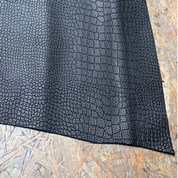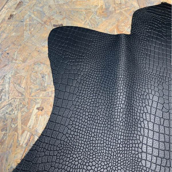 Een stevige zwart bewerkte reptiel leren lap