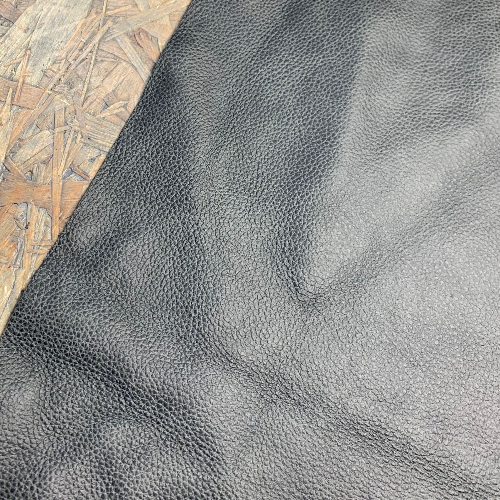 Een stevige en ietswat stugge donkergrijs gemeleerde leren lap