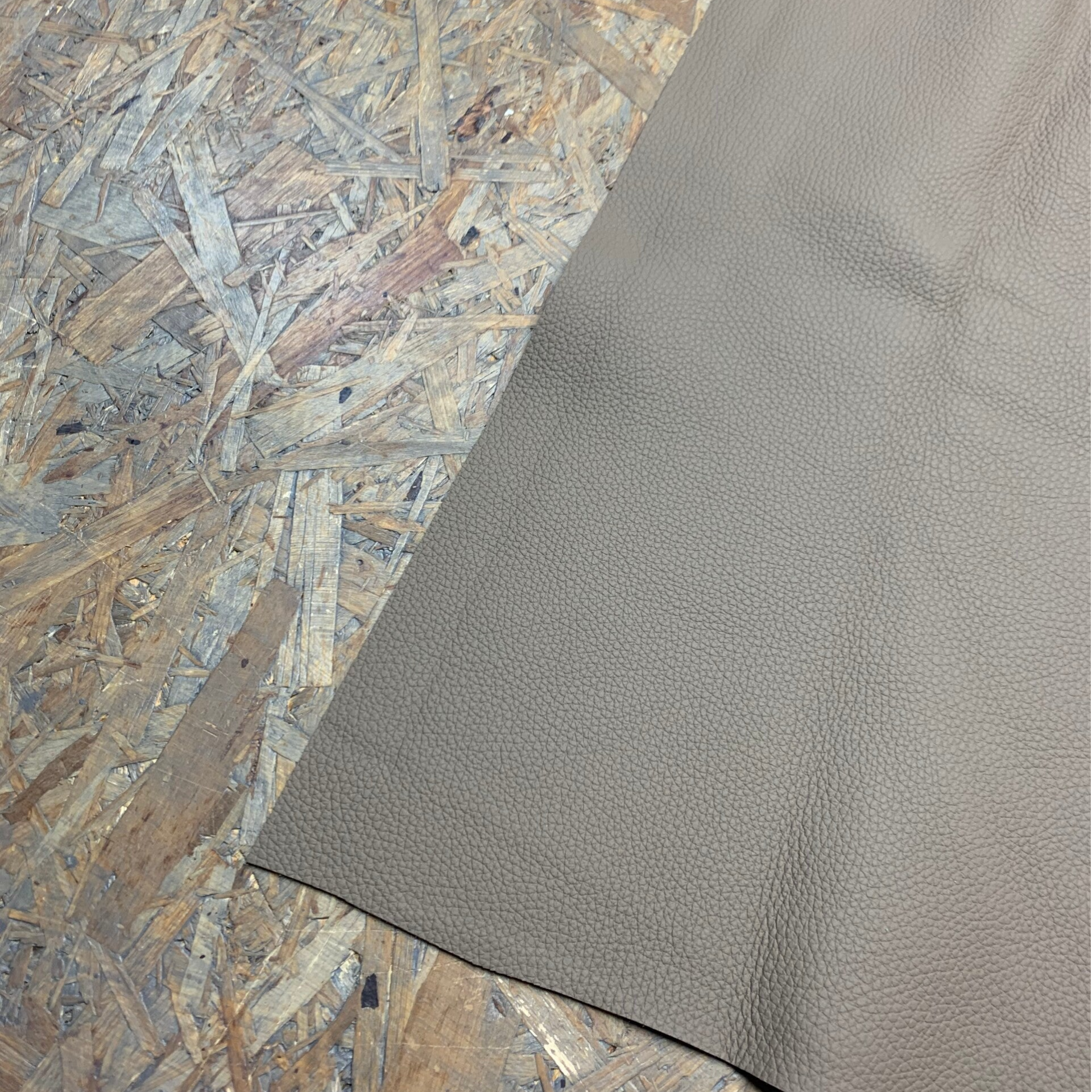 Een stevige doch soepele pebble cementkleurige leren lap