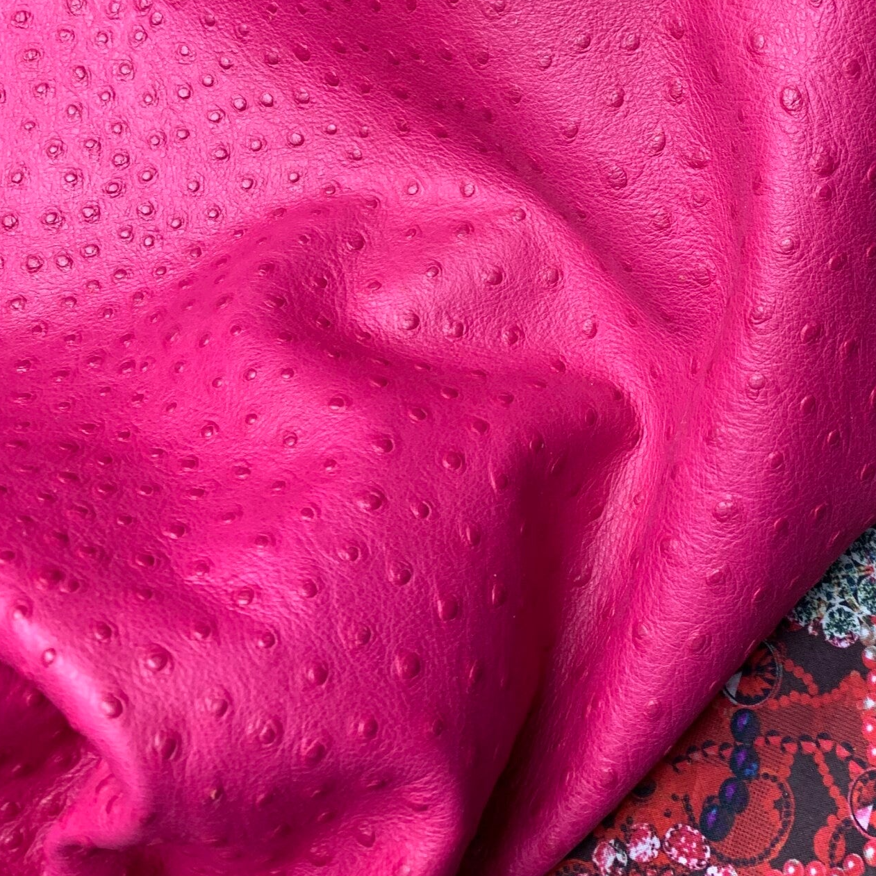 Een waanzinnige unieke fuchsia struisvogel leren lap