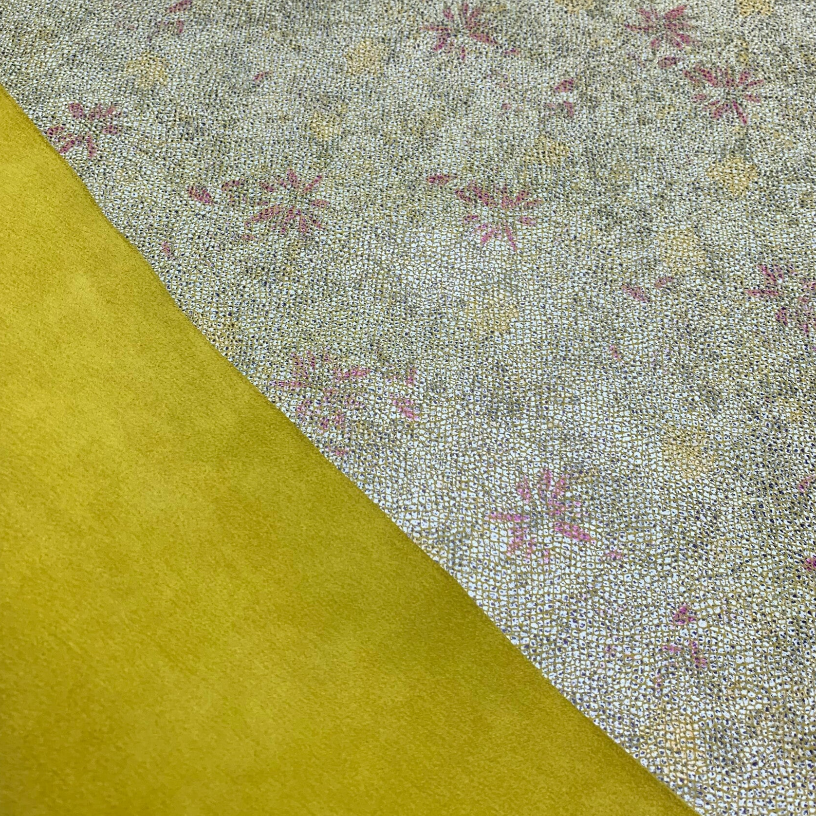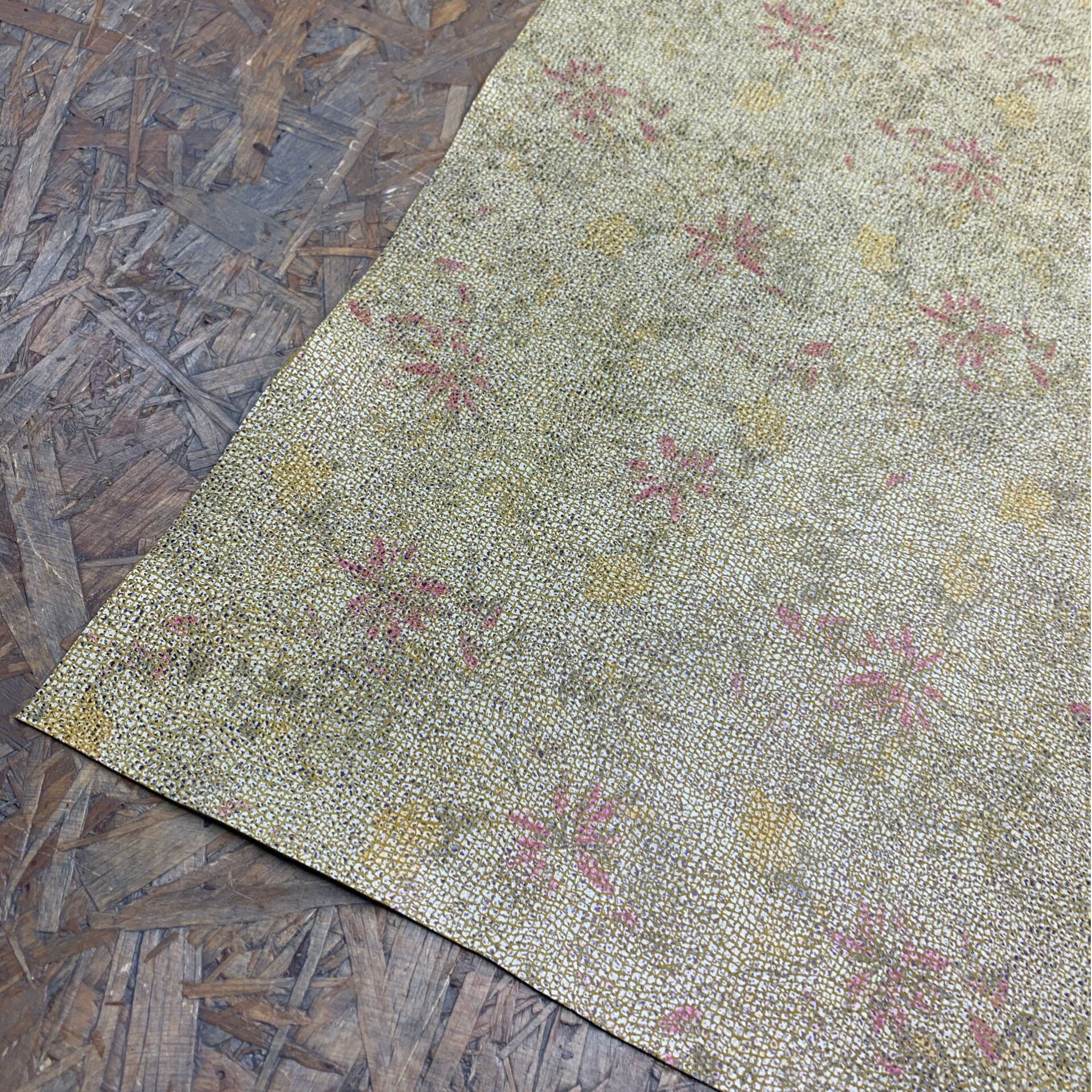 Een prachtige stevige doch soepele geel met bloemen leren lap, zelfs de achterkant is goed te gebruiken