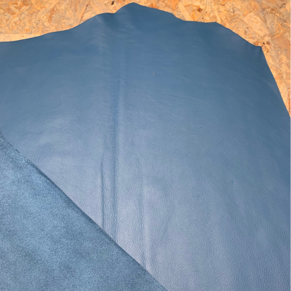 Hoogwaardige kwaliteit soepel, stevig en zacht licht zeeblauw rundleer, voelt als prachtig kalfsleer, met mooie achterkant