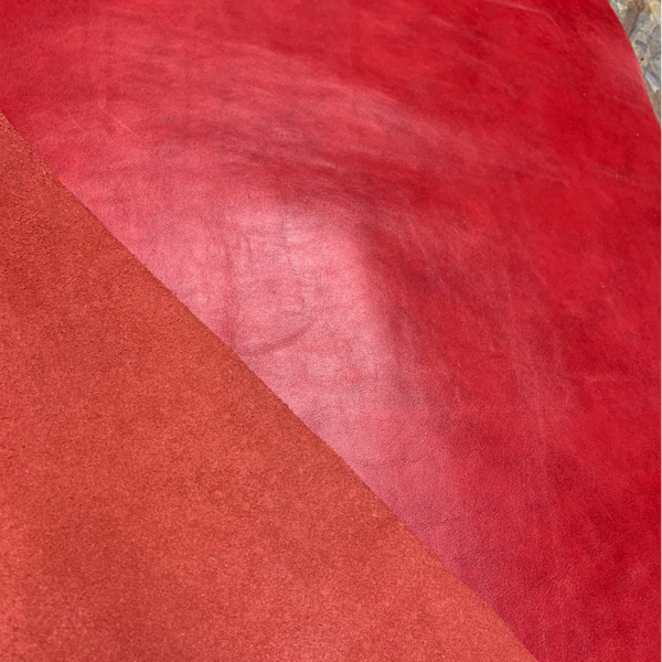 Een prachtige gemeleerde koraalrode leren lap