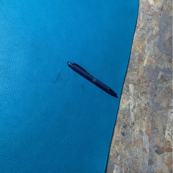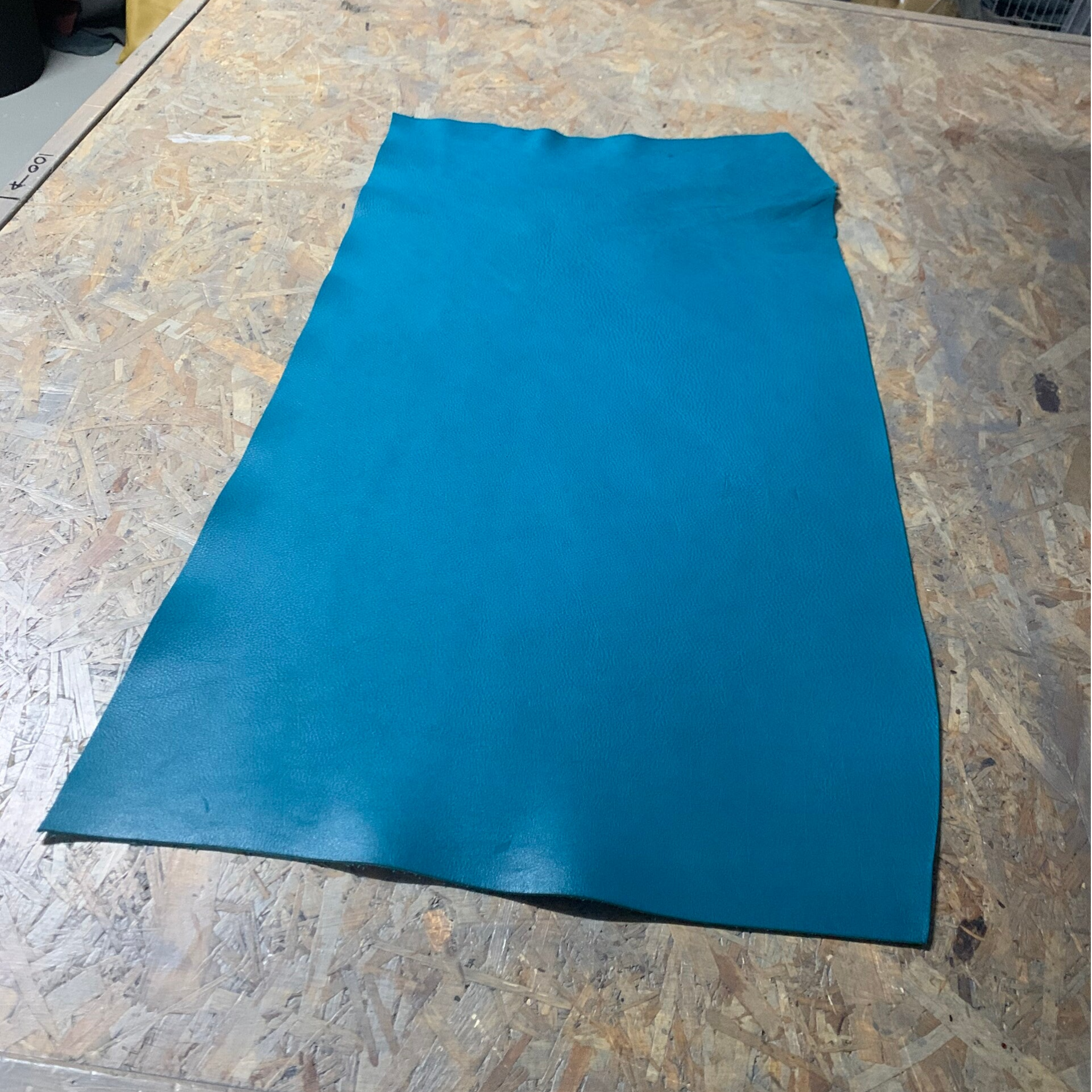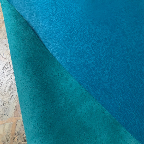 Een schitterende standige zeegroene leren lap (foto's lijken azuurblauw)