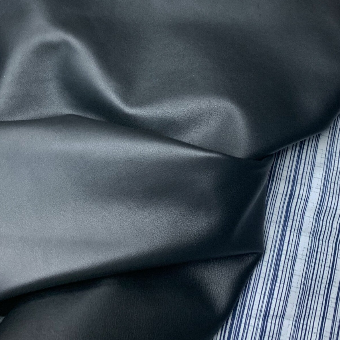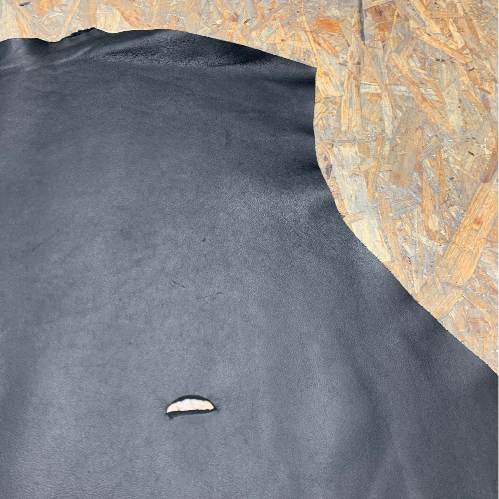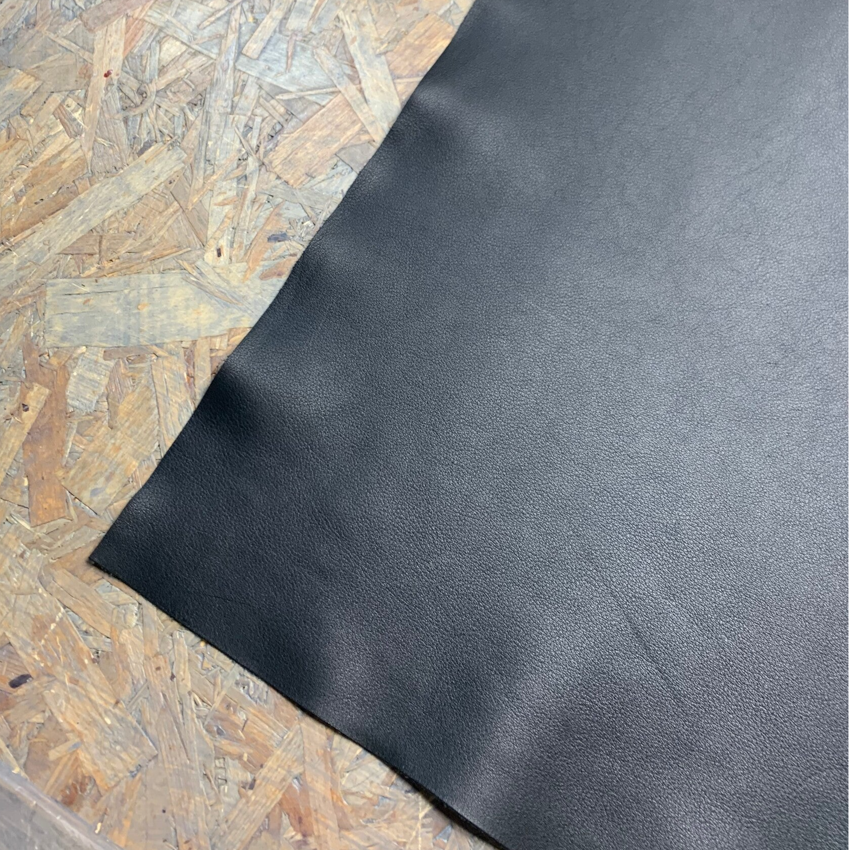 Een soepele zwarte leren lap met zwarte achterkant