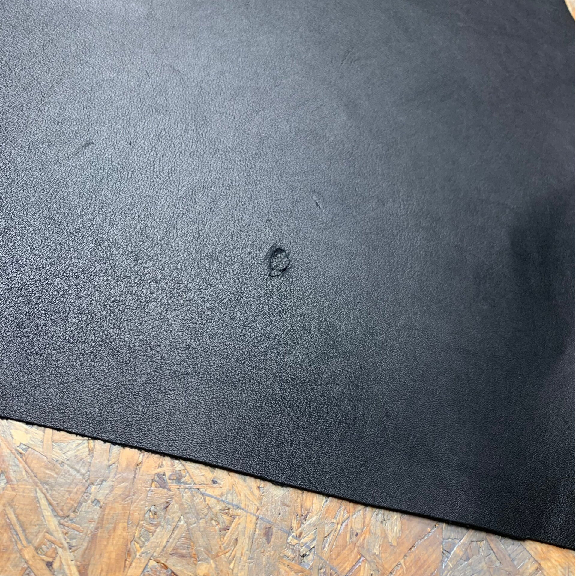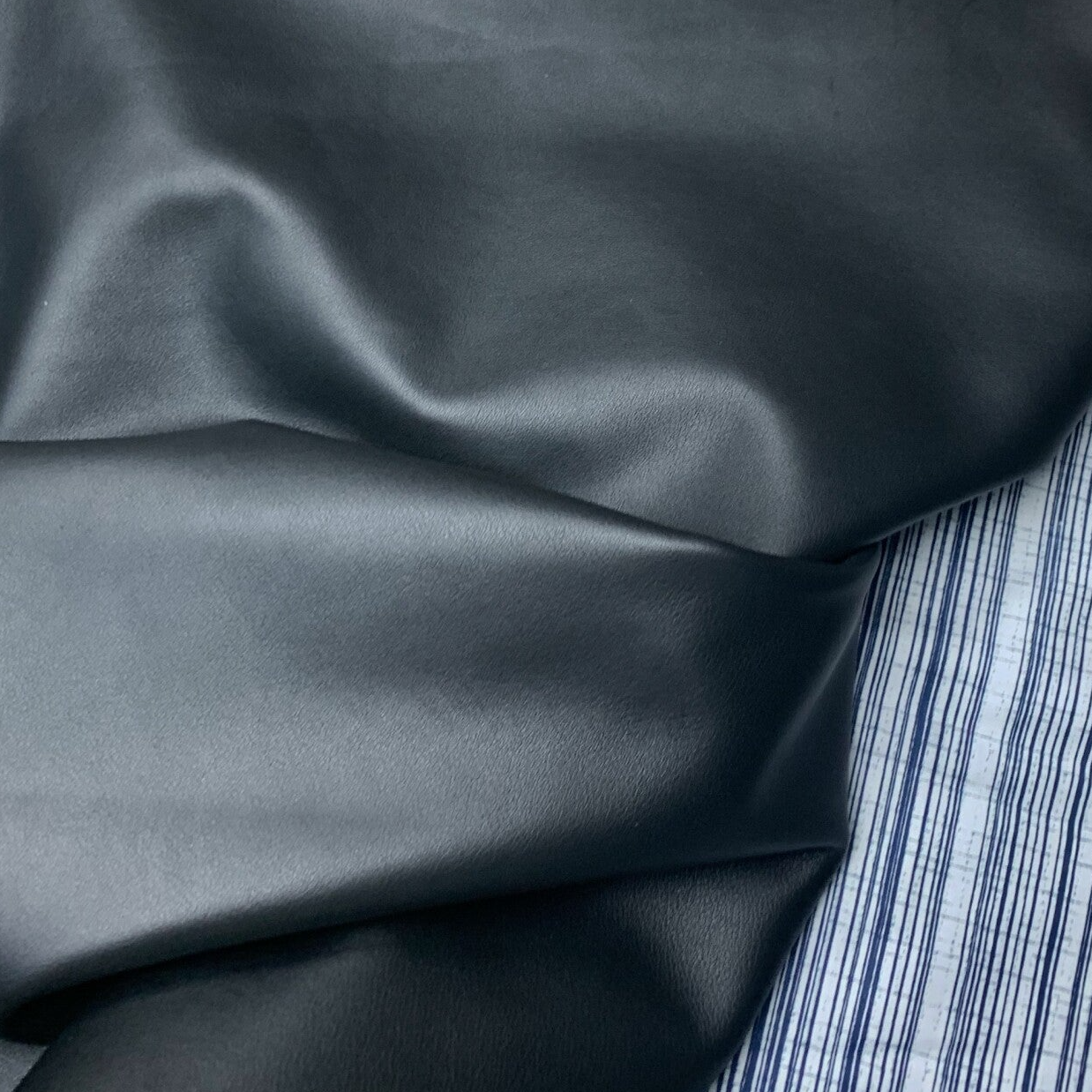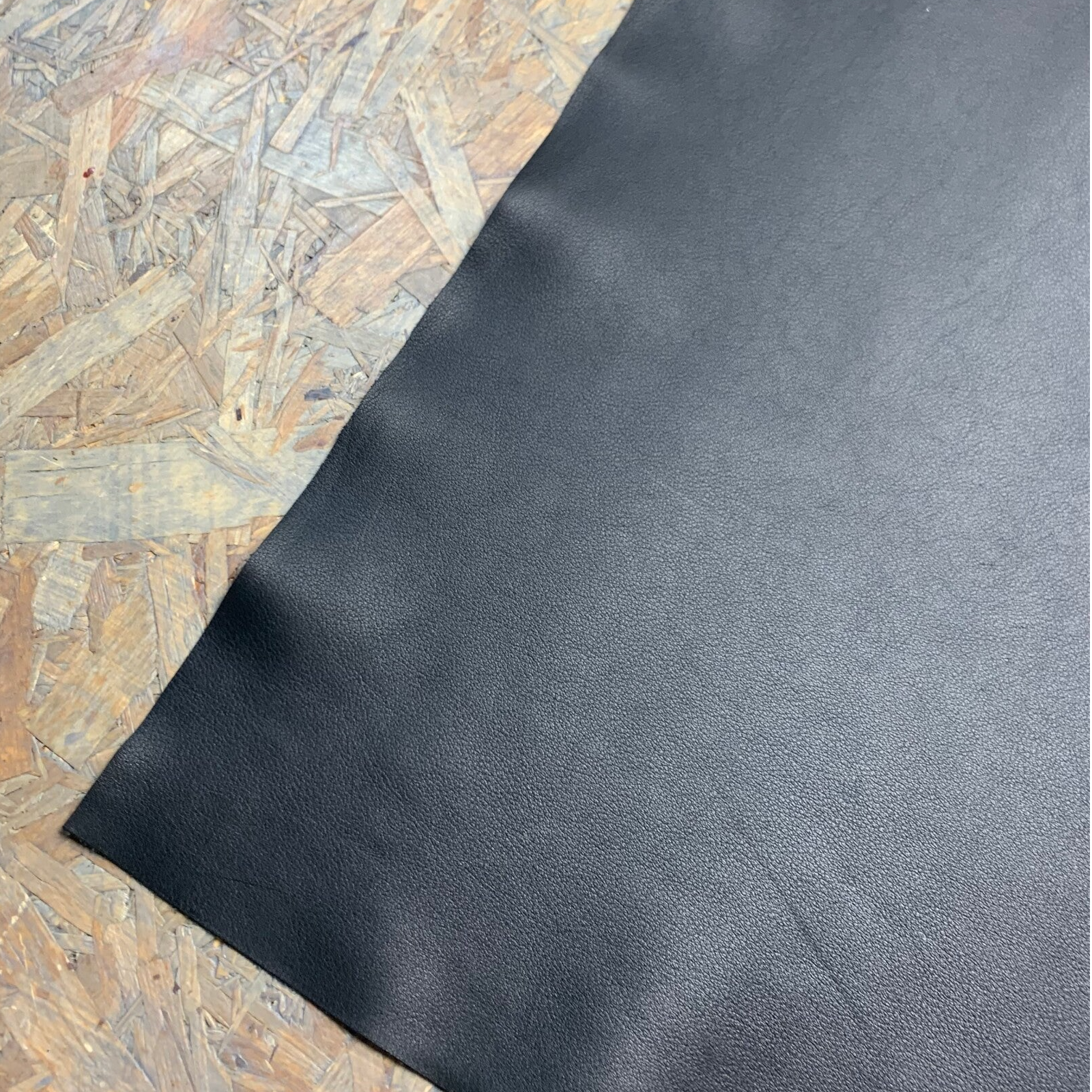 Een soepele zwarte leren lap met zwarte achterkant