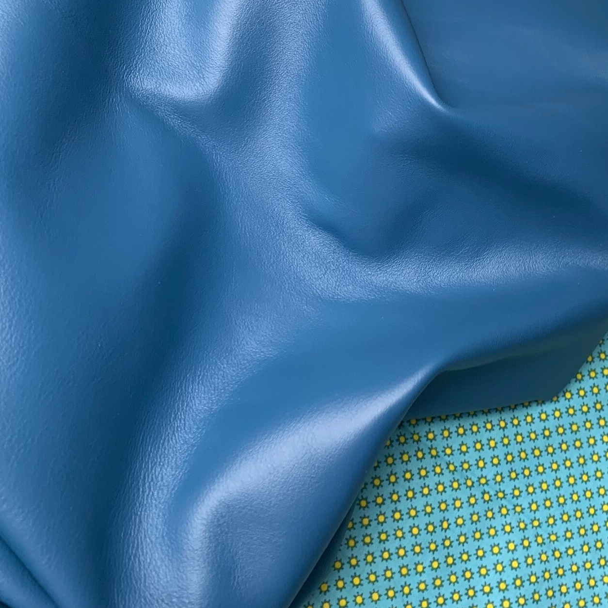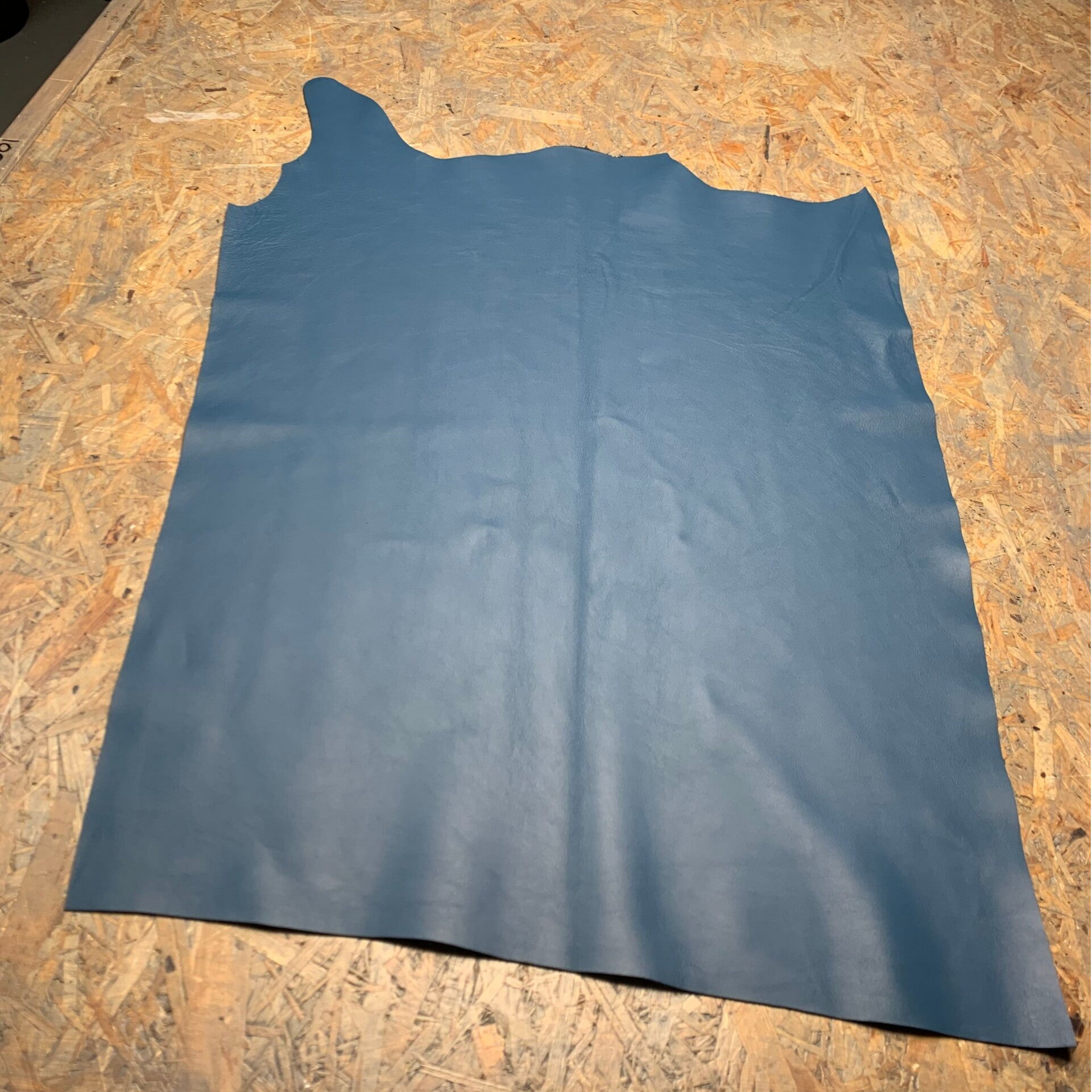 Hoogwaardige kwaliteit soepel en zacht zeeblauw rundleer, voelt als prachtig kalfsleer, met mooie achterkant