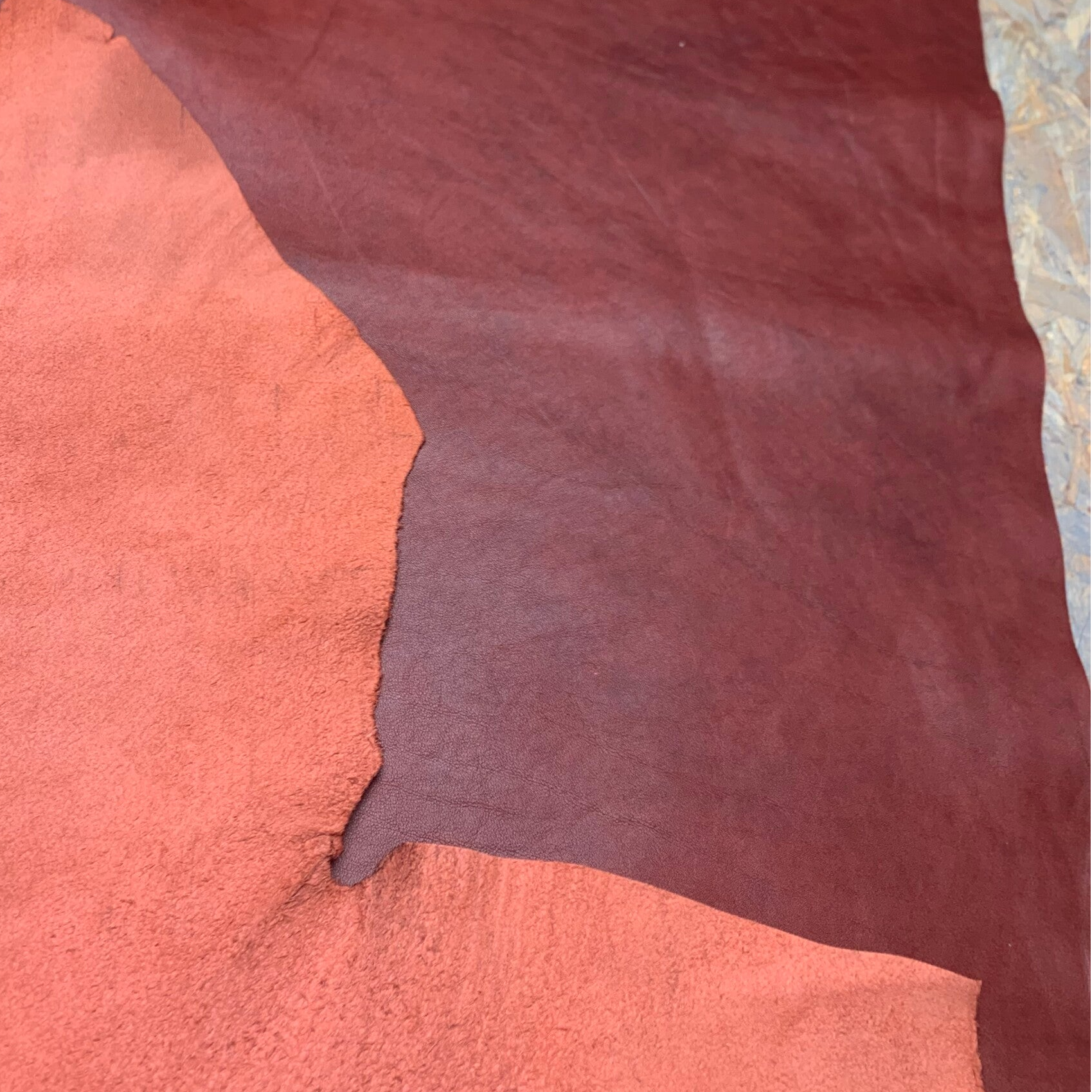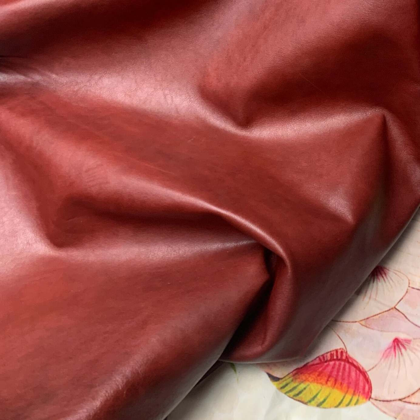 Een prachtige soepele gemeleerd bordeauxrode leren lap
