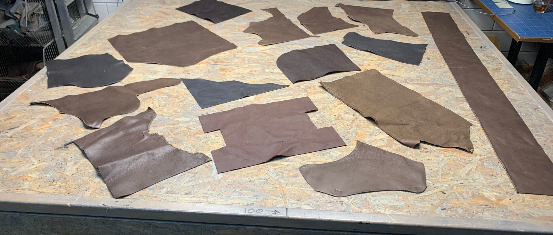 Diverse bruine effen leren lapjes,