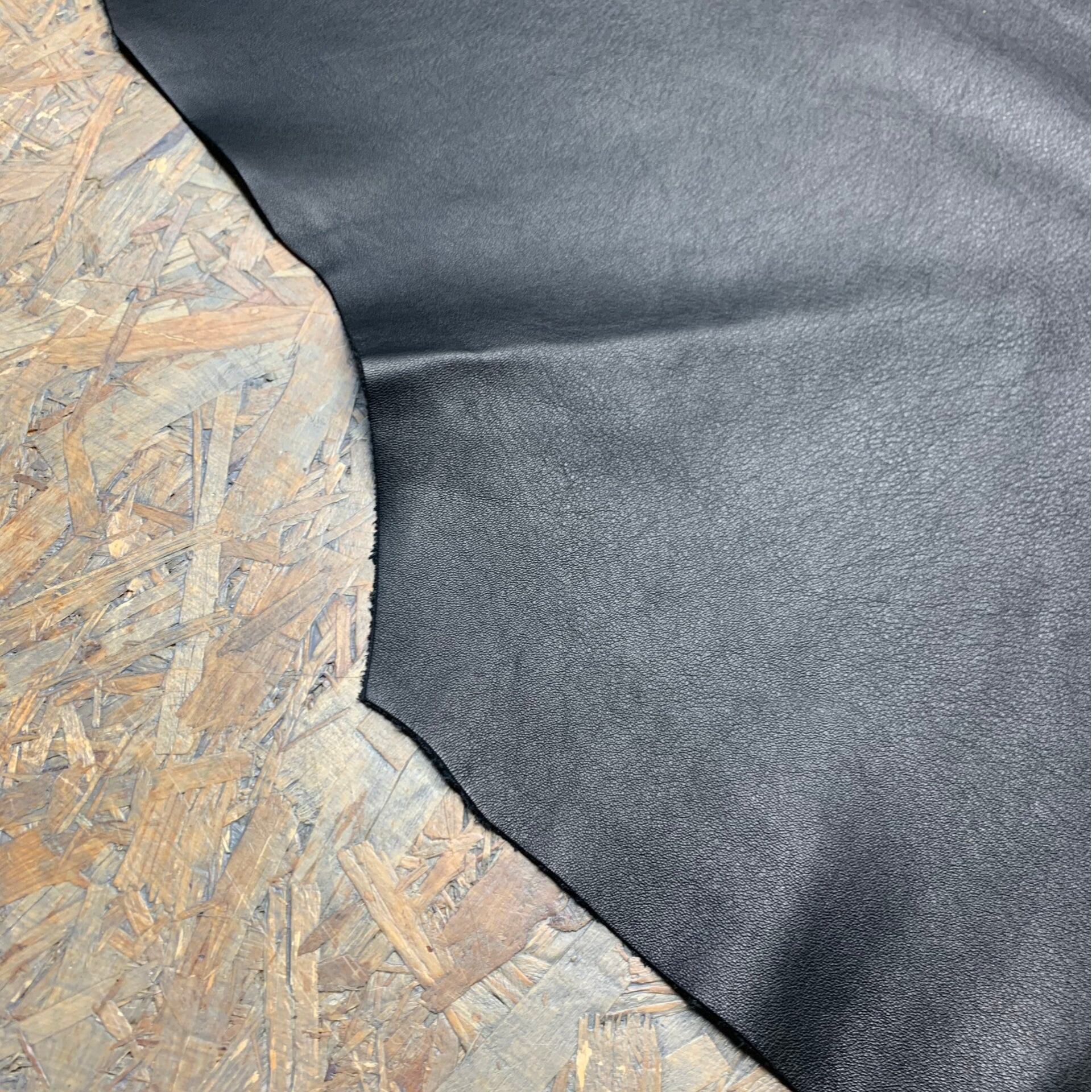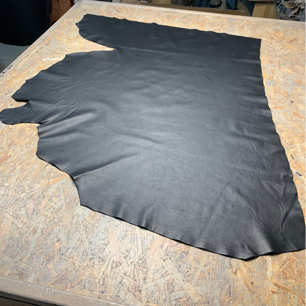 Een soepele zwarte leren lap met zwarte achterkant