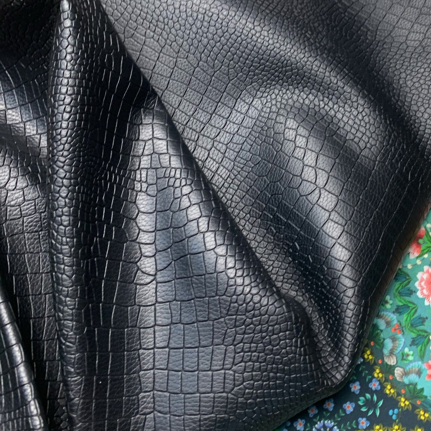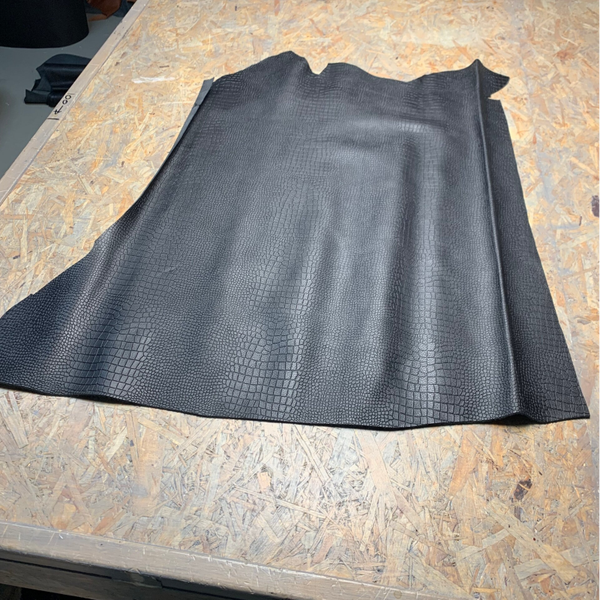 Een prachtige stevige zwart bewerkte reptiel leren lap