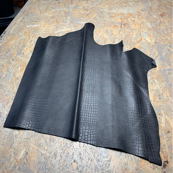 Een prachtige stevige zwart bewerkte reptiel leren lap