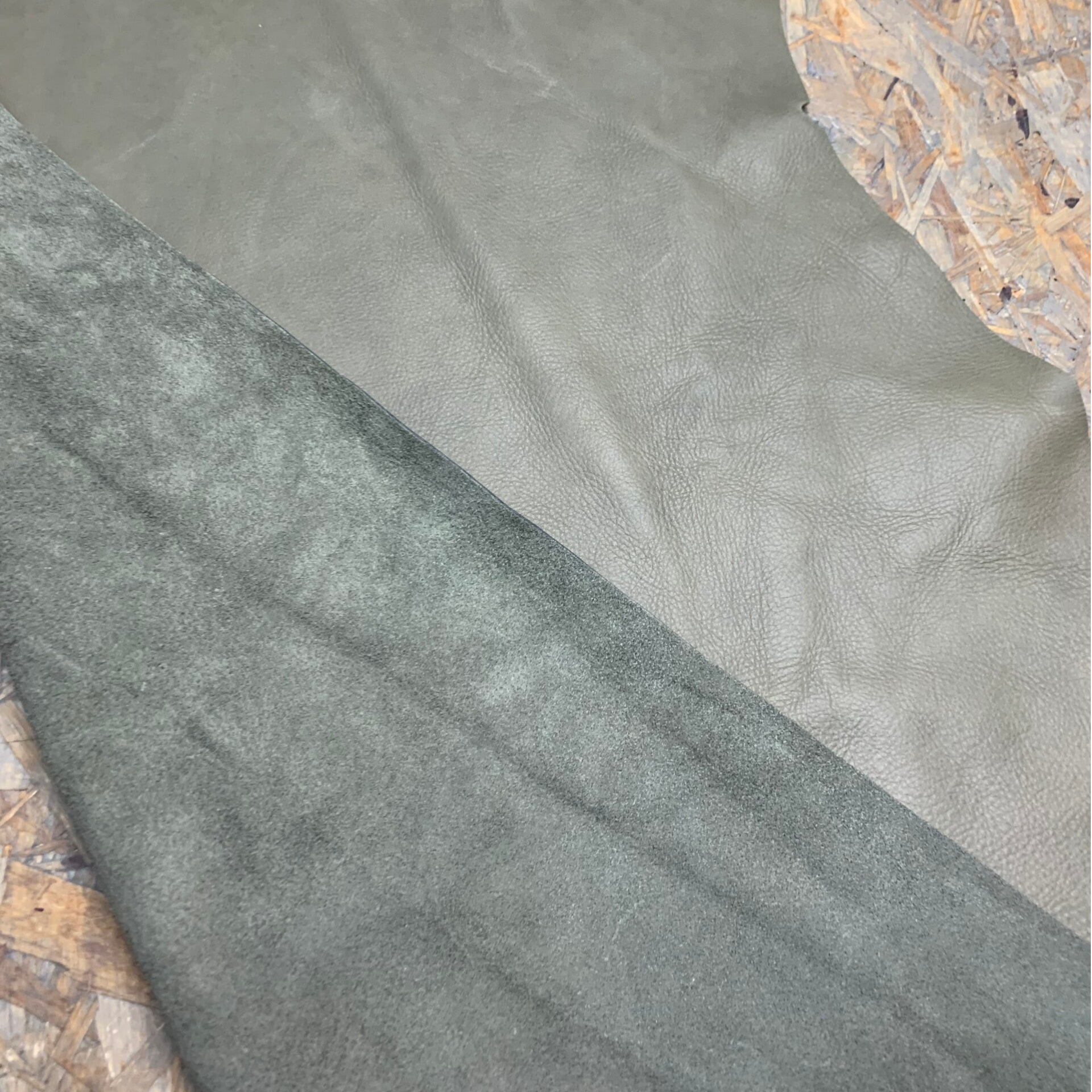 Een soepele doch stevige licht gemeleerd olijfgroene leren lap