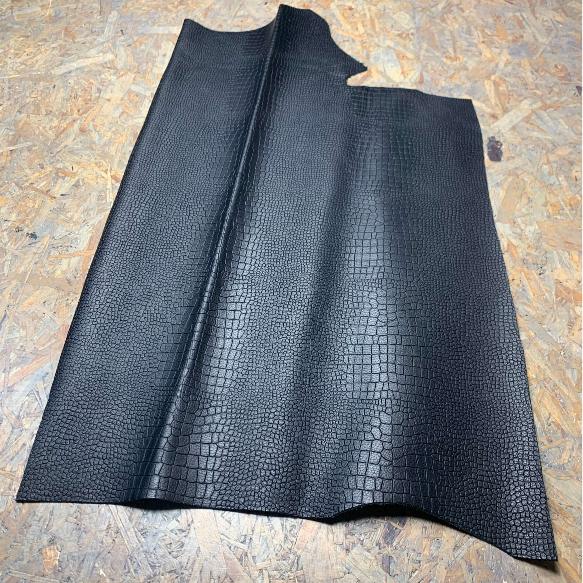 Een prachtige stevige zwart bewerkte reptiel leren lap
