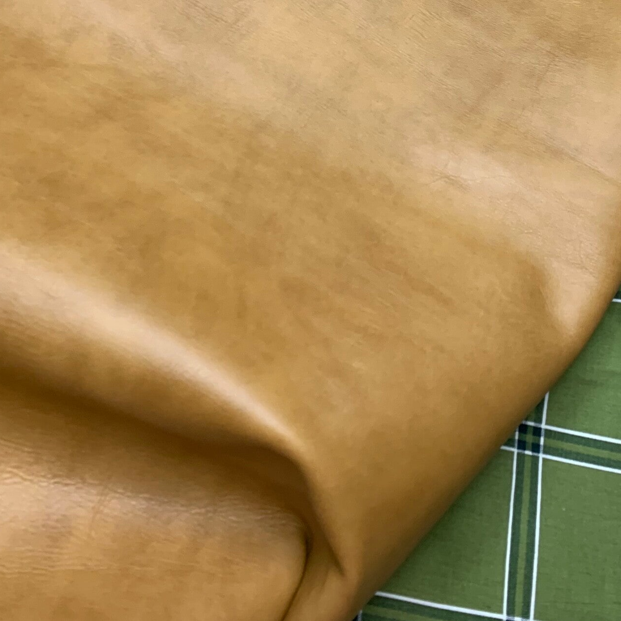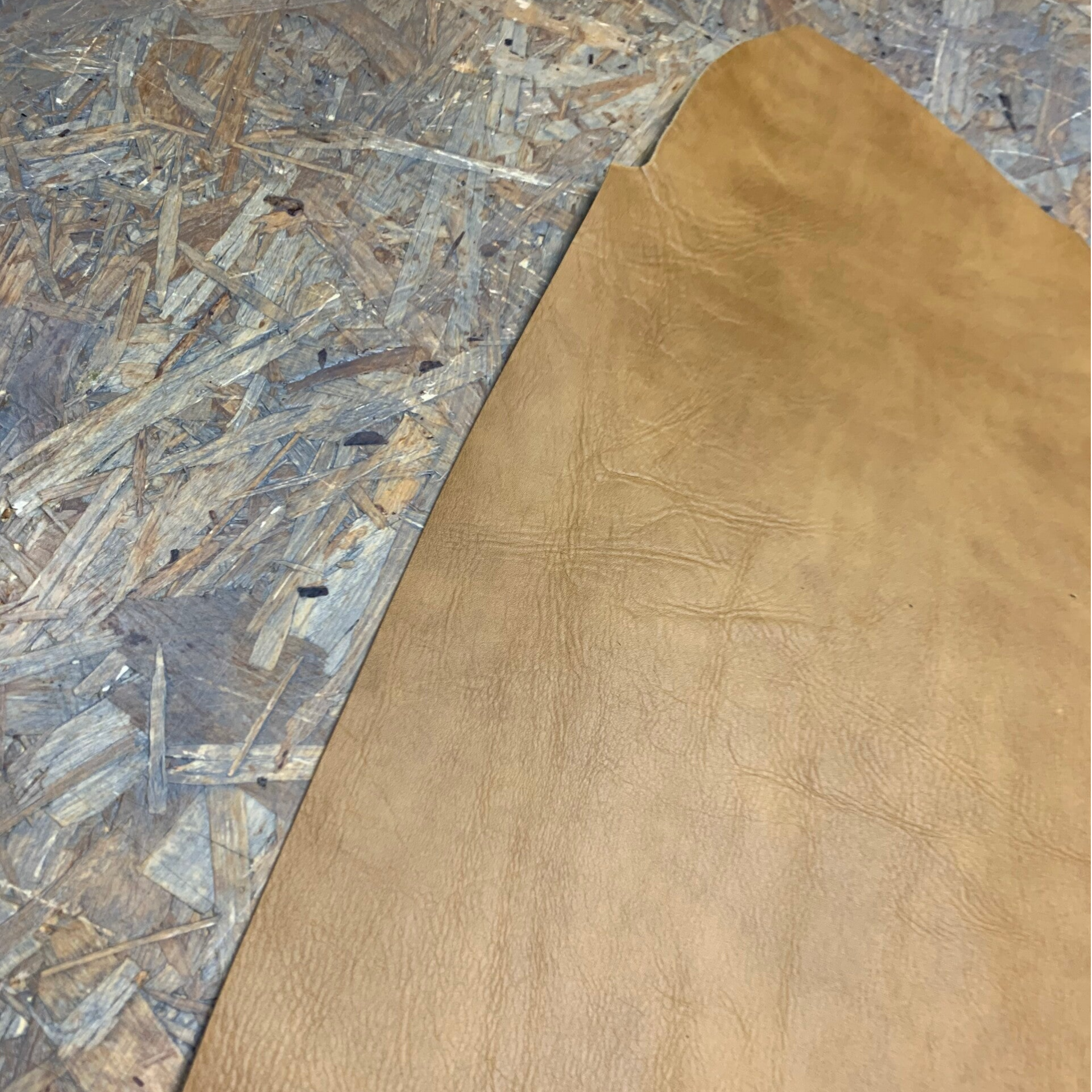 Een standige licht gemeleerde cognac kleurige leren lap