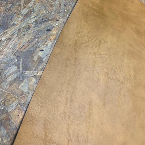 Een standige licht gemeleerde cognac kleurige leren lap